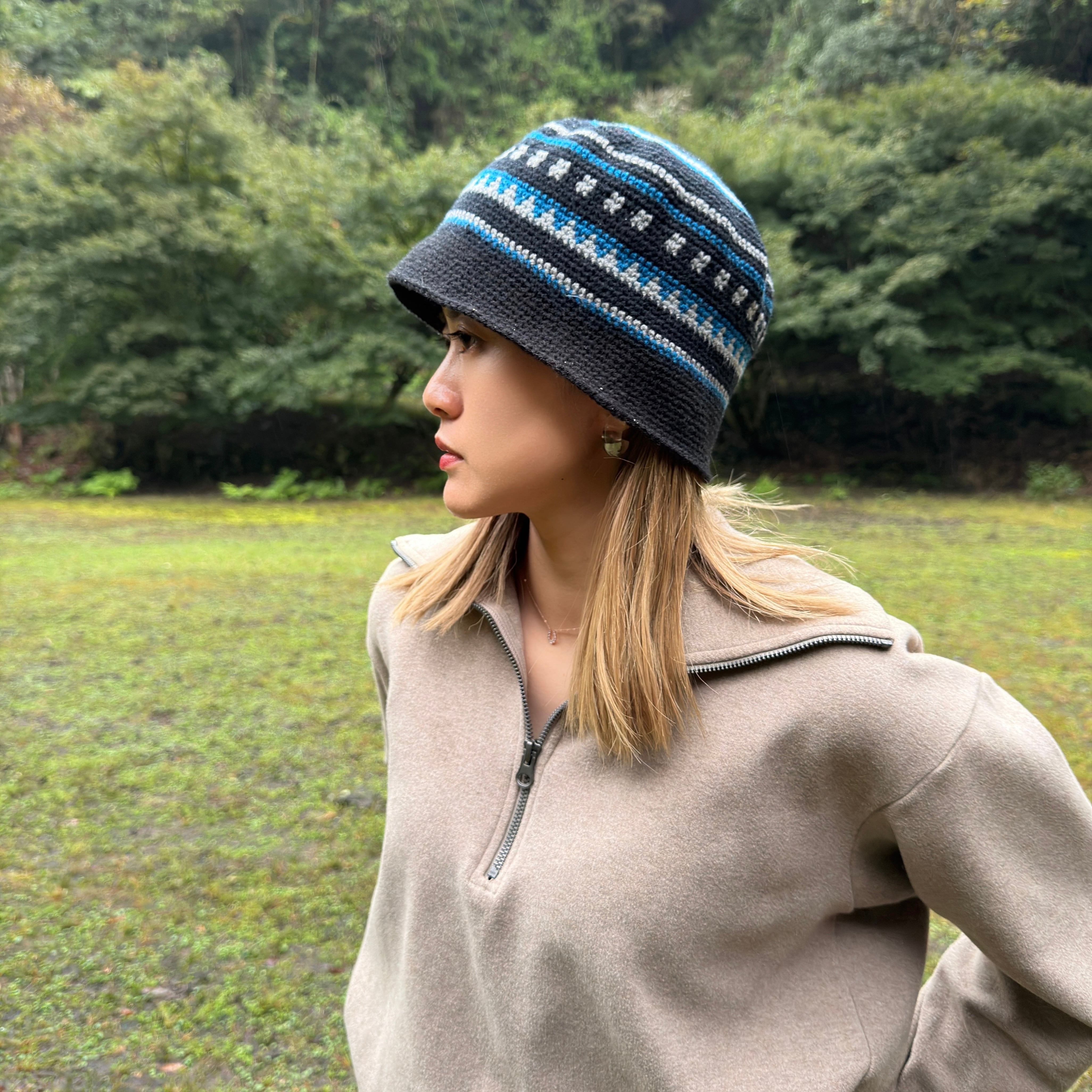 全て手編みの温かみのあるクラッシャーハットです。